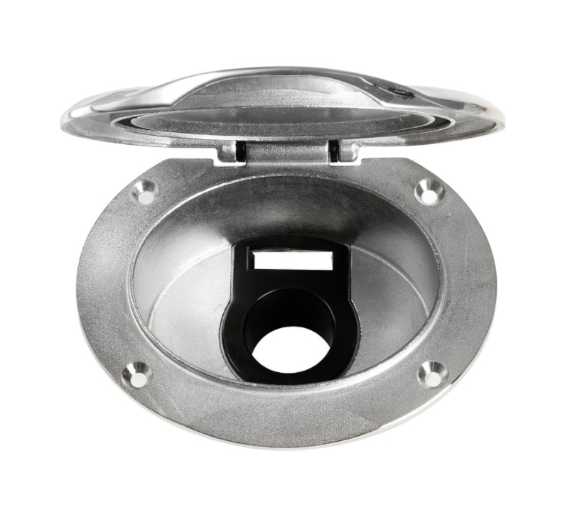 Палубный душ Osculati 15.304.61 изготовлен из нержавеющей стали AISI 316 и оснащен фиксирующимся в открытом положении люком, обеспечивая устойчивость и долговечность в морских условиях.