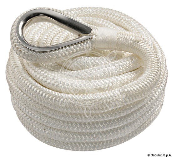 Osculati 06.443.72 - Сплесненный швартовочный трос Mooring line Ø14ммx9м 2300кг из белого полиэфира с коушем из нержавеющей стали