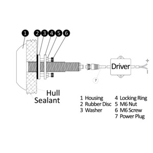 Изготовлен из зеркально-polished AISI 316 нержавеющей стали, оснащен 6 мощными светодиодами и параболической системой для увеличения яркости. Работает только при погружении в воду.