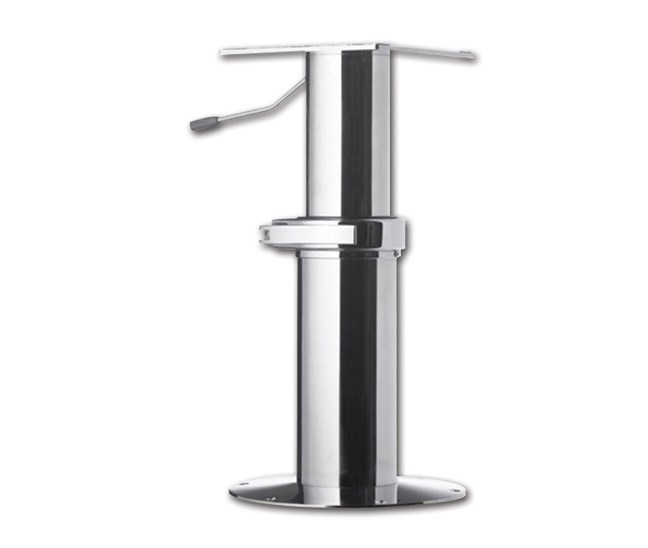 Колонна для судового кресла из полированной 316 нержавеющей стали, регулируемая по высоте. Диаметр трубы 129/108 мм. Регулировка по высоте при помощи газовой пружины (400N) с блокировкой "Quick Release". Доступна в двух стандартных размерах, другие- по запросу. Размеры труб.: 129/108 мм. Высота: 400-590 мм. Диаметр ног: 300 мм.