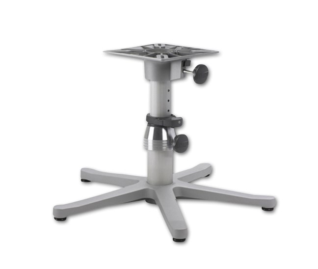 Основание для стула с регулируемой высотой. Оснащено ребристой алюминиевой стойкой и кнопкой регулировки, чтобы зафиксировать высоту. С возможностью вращения на 360 ° и съёмной верхней пластиной. MX имеет ручную регулировку высоты с "Автоматическим зажимом", конденсированное обеспечение высоты модели PX с регулировкой высоты газовой пружиной (400N). Доступен в трёх стандартных размерах, другие высоты по запросу. Размеры труб: 76/60 мм. Высота: 360-450 мм. Диаметр ног: 676 мм.