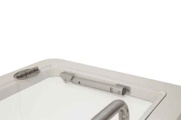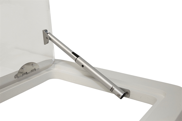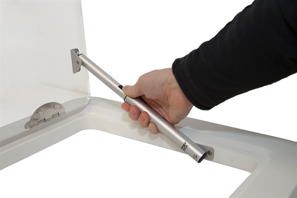 Держатель крышки ROCA Rakego разработан для фиксации горизонтальных и вертикальных крышек, таких как палубные столы или люки рундуков. Механизм открывается нажатием кнопки и позволяет надёжно удерживать крышку в различных положениях. Максимальная нагрузка составляет 50 Нм. Конструкция допускает установку с любой стороны, что делает её универсальной и удобной в эксплуатации.