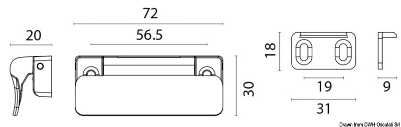 Ручка для дверец размером 72x30x20 мм. Скрытая установка под притвором дверцы. Изготовлена из хромированной латуни.