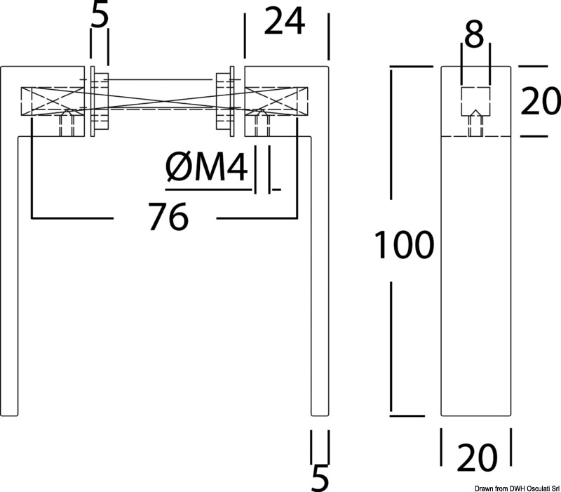 Дверная ручка, изготовленная из полированной нержавеющей стали, размером 100x8 мм, модель "Nauta S".