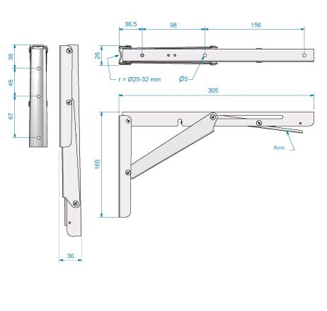Параметр Значение Тип установки Настенный монтаж Вертикальные размеры 165 x 20 мм Горизонтальные размеры 303 x 20 мм Функция Складывающаяся поддержка для столешницы