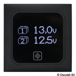 Osculati 14.659.10 - цифровой вольтметр с сенсорным экраном позволяет управлять двумя 12 В аккумуляторами. С легкочитаемым дисплеем для мониторинга напряжения, он обеспечивает компактный интерфейс для удобного контроля.